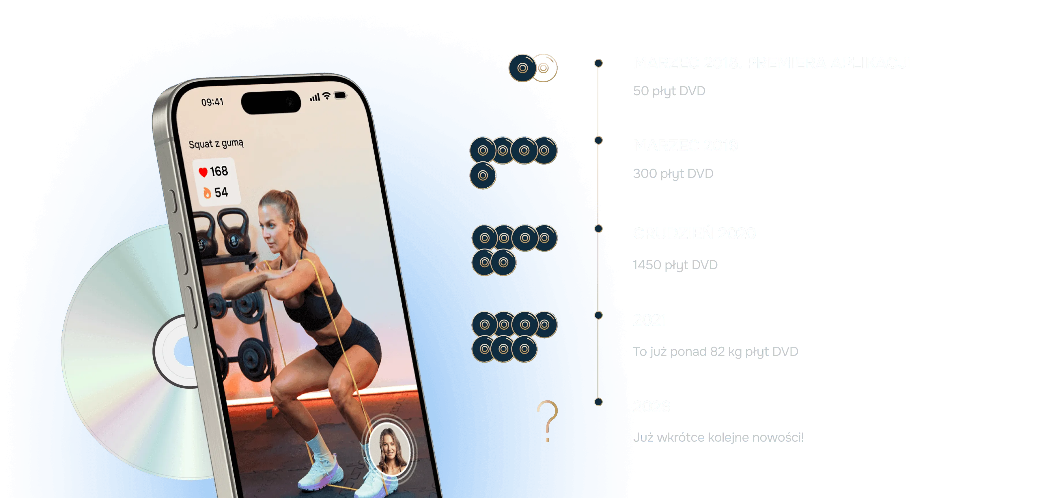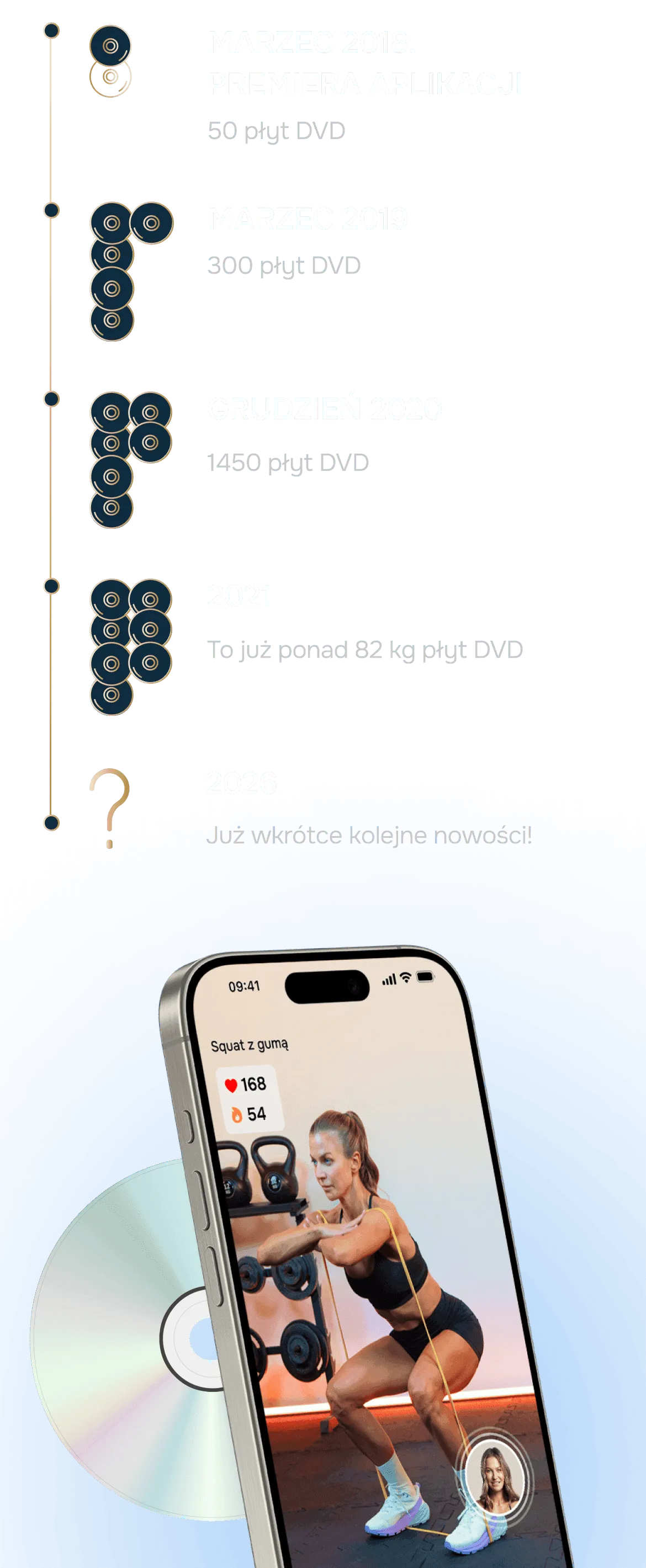 Potrzebowałabyś ponad 1450 płyt, żeby nagrać wszystkie treningi z mojej aplikacji! Gdyby każda z nich była w osobnym pudełku, to ułożone w wieżę osiągnęłyby wysokość ponad 8,5 metra!